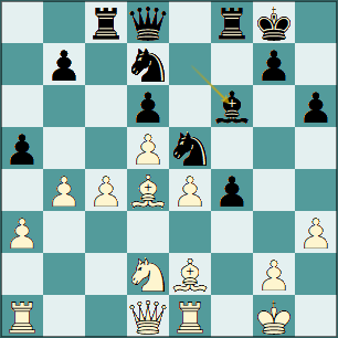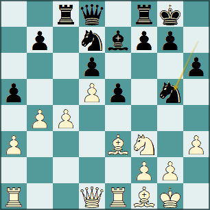 Un sacrificio de peón brillante, que para un profesional será temático pero mi idea se sale algo de lo común y se comprenderá mejor después de mi inusual próxima continuación. Las negras enfrentan una difícil elección.