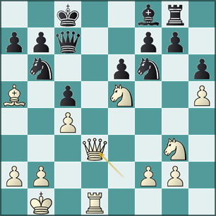 La hice rápidamente como una jugada normal y la máquina descubre que se trata de un importante error. La jugada correcta era 19.Dd3! que no me pasó por la cabeza.