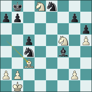 30.Rd1! Af2 31.Re2 Ag1 (pierde 31...Ad4 32.Cexd4 cxd4 33.Rd3 Rc7 34.Rxd4) 32.b3! Rb7 (también pierde 32...Rc8 33.Cexg7 Cxg7 34.Cxg7 Ah2 35.Cf5 Af4 36.Rf3 Ag5 37.Re4 Rd7 38.Rd5) 33.Rf3 Cf6 (33...Rc6 34.Cexg7 Cxg7 35.Cxg7) 34.Cexg7 Cg8 35.Ce6