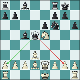15...Dxa2! es la jugada natural, que amenaza mate y exige a las blancas que muestren todo lo que tienen para compensar ese peón. Fue la elección de Hedman en la siguiente partida que disputamos unas tres semanas más tarde.