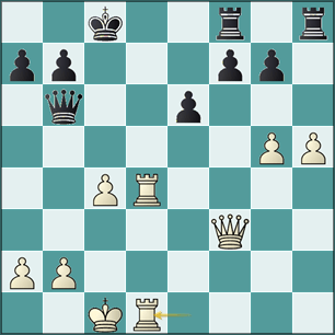 Un error importante que hace fracasar al ataque y las negras aprovechan para tomar el control de la partida. La continuación correcta era 25.Th1! De5 única 26.Dg4!- De3+ (26...Rc8 27.Tde1) 27.Rb1 Rc8 28.Txd5 Rb8 29.Tdd1 y las blancas siguen mejor.